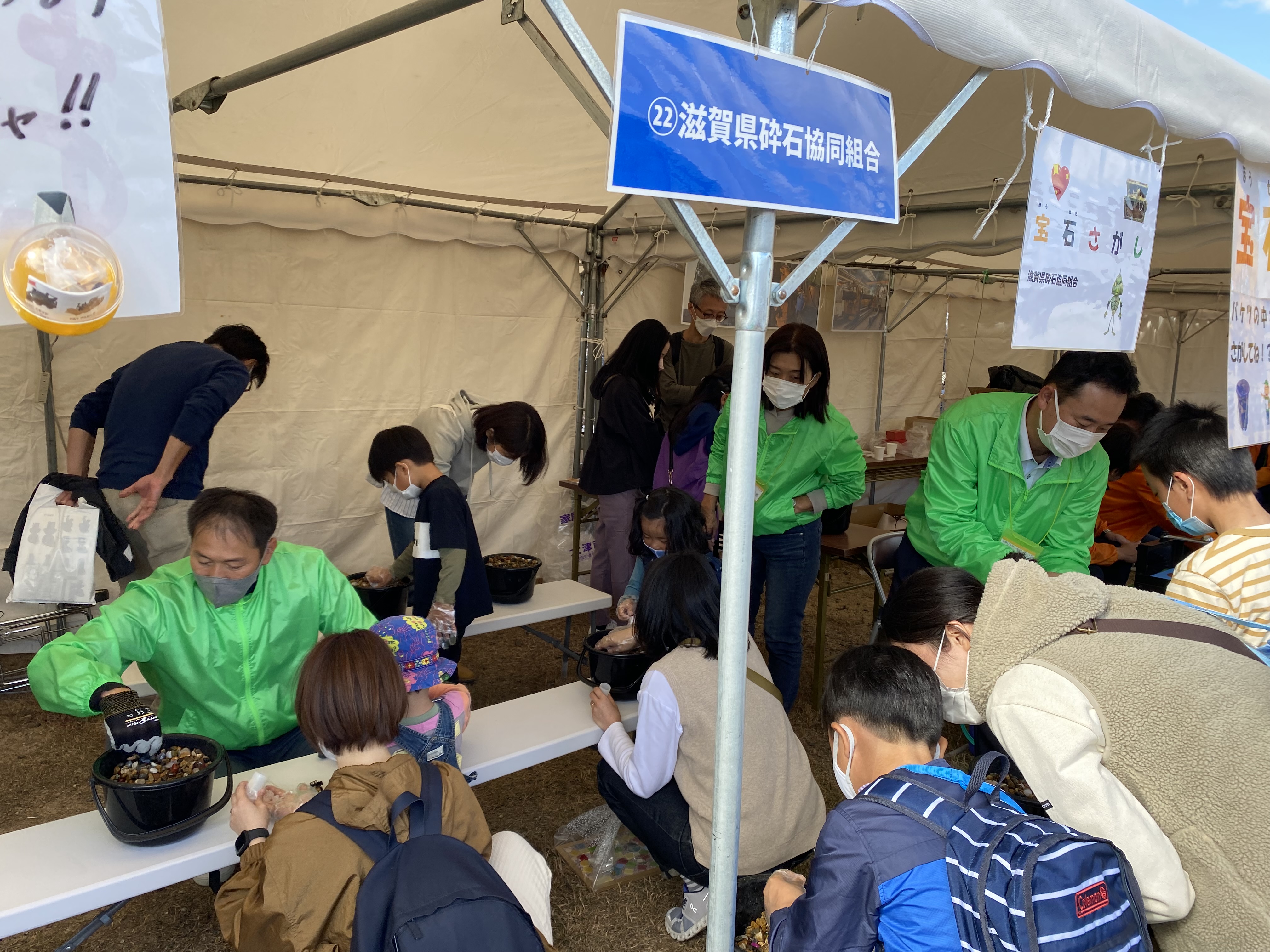 当組合のブースでは恒例の「宝石さがし」のイベントを行ったところ、410名のご来場者あり、